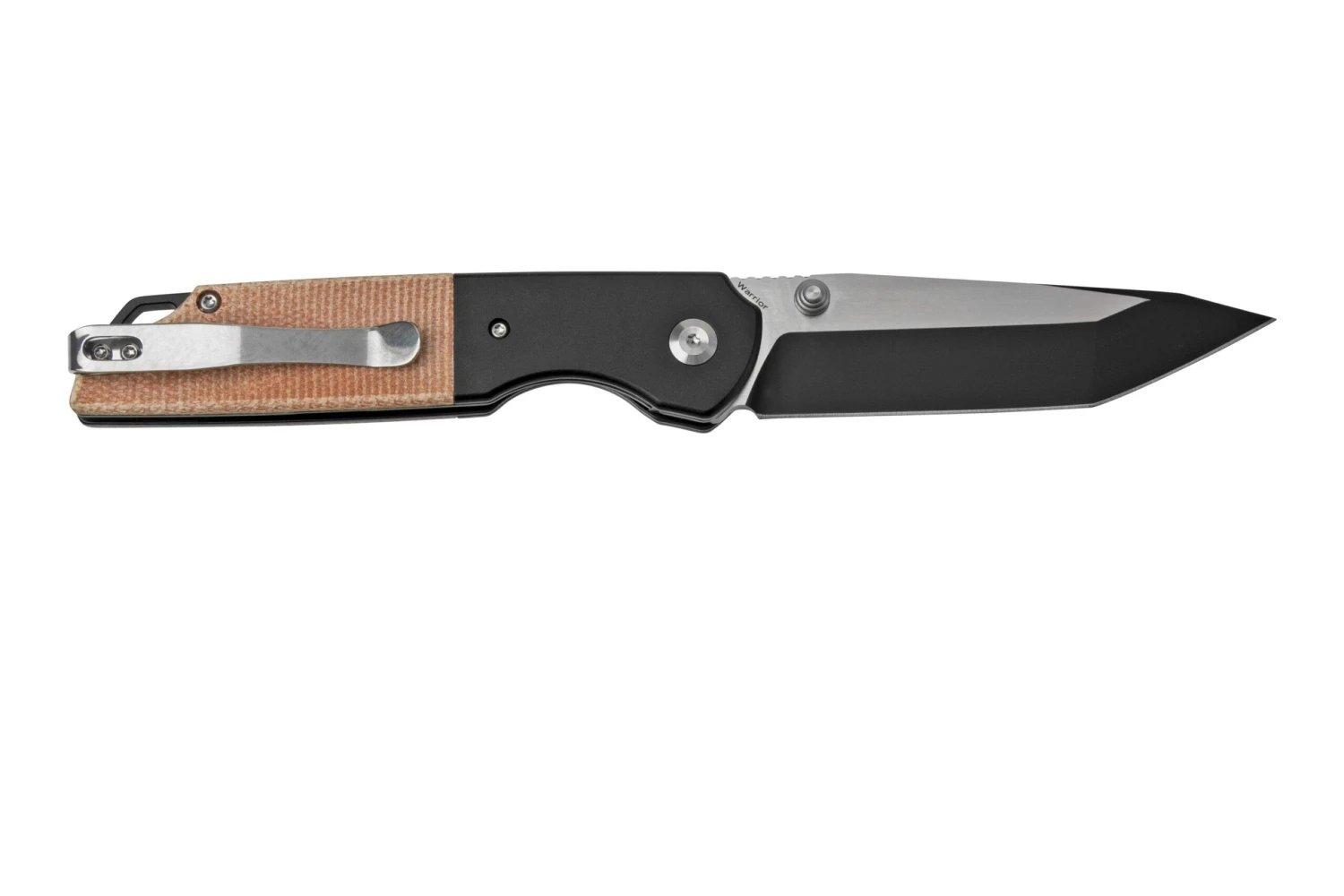 Le Kansept Warrior est un couteau de poche très chic, au design élégant. Il a été conçu par Kim Ning, l’un des designers de Kansept. Ce couteau a été pensé pour la collection petit budget de Kansept, la collection T. Ce sont des couteaux fonctionnels et abordables. Le Warrior a une taille moyenne, avec une lame de style droppoint. Vous ouvrez la lame avec les repose-pouces. Elle s’ouvre d’un mouvement très souple, puis est maintenue en place par un solide linerlock.